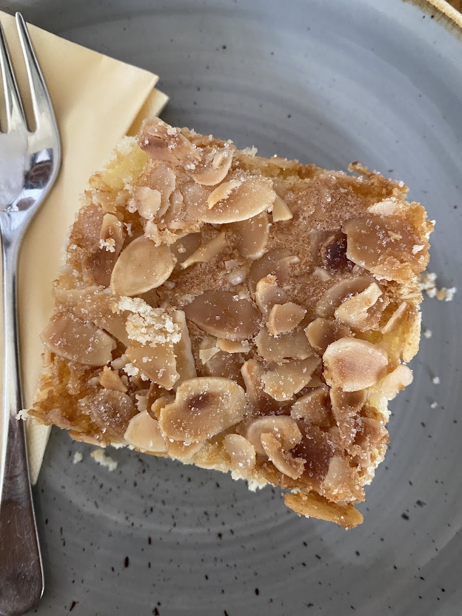 Hausgemachte Kuchen und pikante kleine Gerichte sowie Frühstück. Eine Sonnenterrasse gibt es auch. Sehr herzliche Gastgeber und ein super Kaffee.