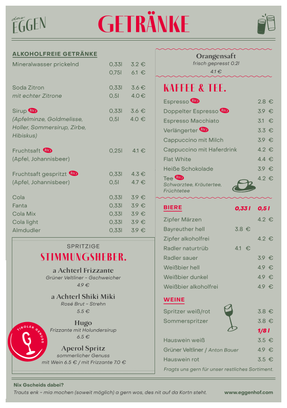 Discover the charm of Das Eggen - Cafe Bistro, a delightful cafe nestled in the scenic Reith im Alpbachtal, Austria. This inviting locale is perfect for any occasion, whether you’re stopping by for a quick coffee or enjoying a leisurely brunch. Customers rave about the delicious coffee crafted from high-quality beans using a traditional espresso machine, as well as the friendly service that makes you feel right at home. Notably, the brunch offerings feature homemade brioche that has left patrons completely satisfied. One cannot overlook the enticing selection of cakes that beautifully complement your drink. Whether it’s a savory Knödel for lunch or a sweet treat in the afternoon, every dish reflects the cafe's commitment to quality. With its lovely terrace for outdoor seating, Das Eggen promises not just a meal, but a memorable experience.